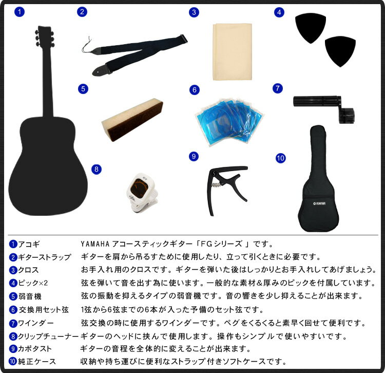 スタッフのコメント: ヤマハのアコースティックギターの代表的モデル「FG」シリーズのエントリーモデル。
