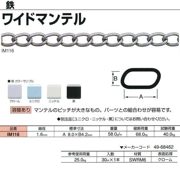 ニッサチェーン 鉄 ワイドマンテル 溶接あり IM116 1.6mm×30m巻